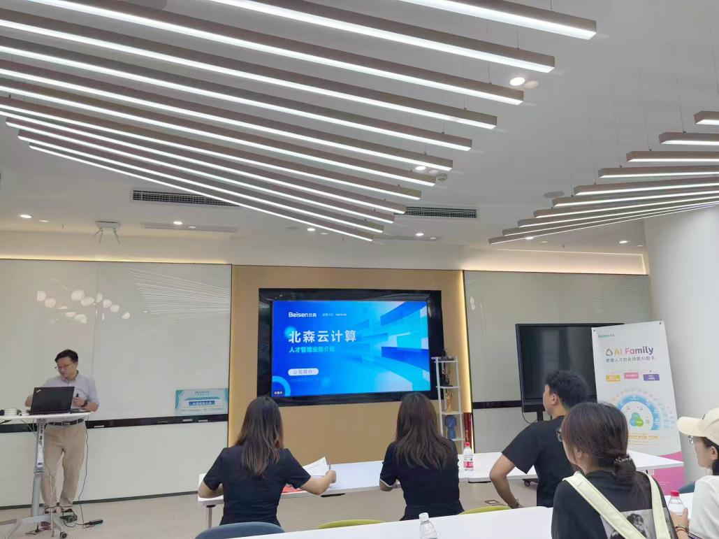 会前,在张老师的引导下,中心一行进行企业实地参观。参观过程中,张老师介绍了北森在人力测评行业的领先地位,详细讲解了公司架构、职工规模及岗位设置等情况,让师生对企业有了直观且全面的了解。