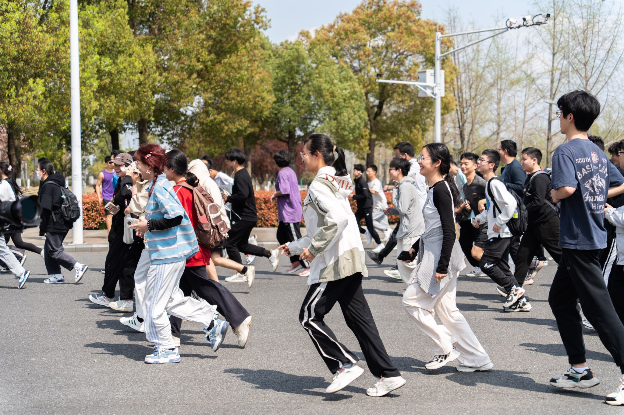 在正式开跑前,主持人于睿宣读了安全须知及注意事项。来自体育学院的领操员曾秀君老师带领全体参与者完成热身运动。高平平副书记为环校微跑活动鸣枪发令。随着发令枪的一声枪响,微马环校跑正式开始。同学们如同离弦之箭,沿着春花烂漫的道路飞奔。一路上,道路两旁的宣传标语鼓舞人心,志愿者和老师手持标语牌,传递着积极向上的正能量。