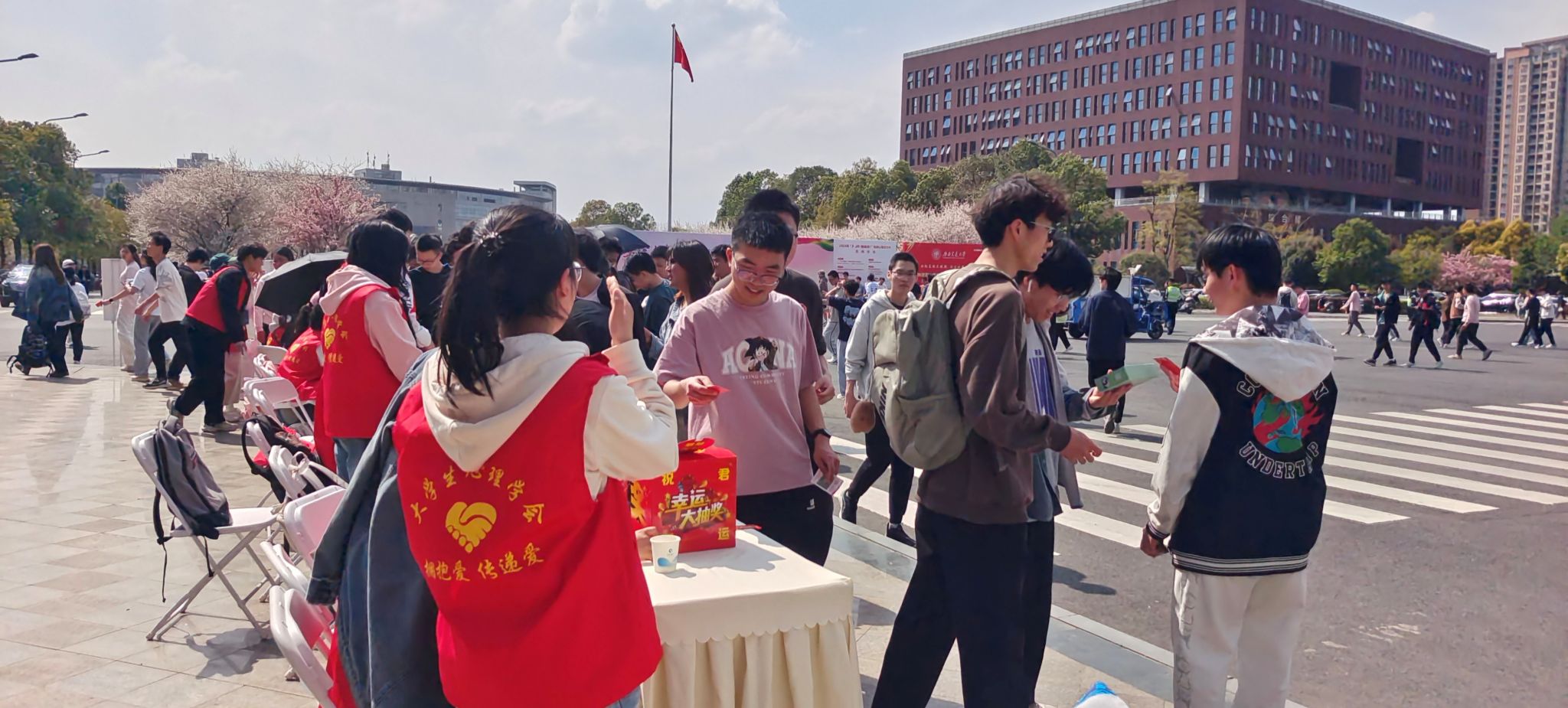 与此同时,九里校区的环校活动同样精彩纷呈。研究生心理学会的志愿者身着玩偶服,在校园内进行环校宣传,与同学们互动,分享小礼品,营造了温馨和谐的活动氛围。