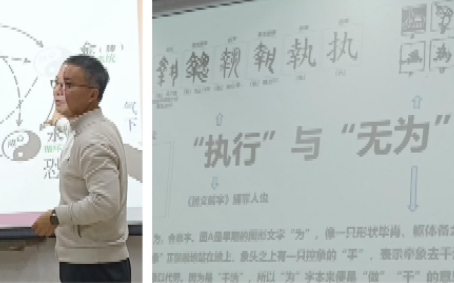 接下来王老师从象形文字的角度向同学们讲解了“执”与“为”的区别,启发我们要增强行为的主动性,不要让执行给双手套上“枷锁”。