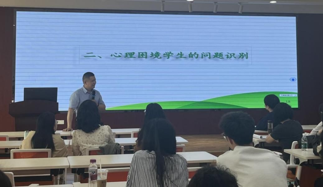 何主任结合自己的门诊经历,教授在座老师如何识别心理困境学生的问题。在识别之前,何主任介绍了心理问题的界定,介绍了精神行为异常识别的清单,简单介绍了一般心理问题出现前的心理与行为征兆。针对这些征兆,何主任提出了相应的干预策略、干预步骤、干预级别,强调要逐步进行心理危机干预。
