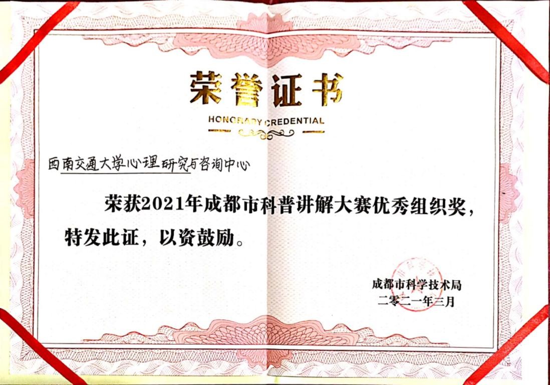 科普基地最终推选三位各具特色的讲解员代表基地参加2021年成都市科普讲解大赛,并荣获“优秀组织奖”。