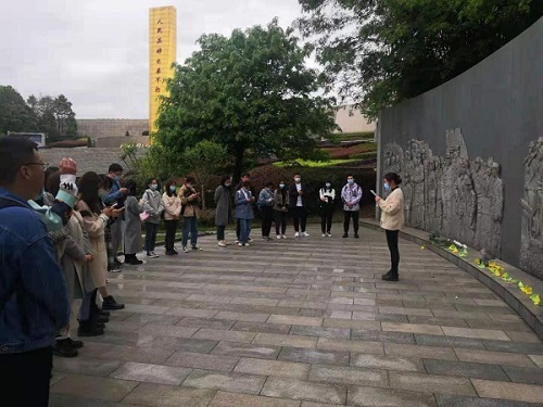 习近平总书记指出:“一个有希望的民族不能没有英雄,一个有前途的国家不能没有先锋”。在中国共产党领导中国人民进行艰苦奋斗的百年光辉历程中,涌现出一大批为中国革命、建设和改革做出卓越贡献的先锋烈士,他们的事迹和精神成为激励我们不断前行的强大力量。为了缅怀先烈,铭记历史,加强学生党员理想信念教育,在2021年清明节前夕,心理中心学生党员前往成都市烈士陵园开展祭奠先烈活动。本次活动由心理中心直属党支部副书记柯小君带队,心理中心辅导员梁坡、陈瑶及全体学生党员,发展对象和积极分子代表参加。