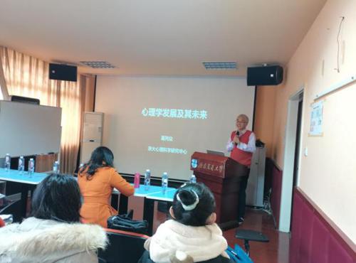 会议期间,心理中心还邀请工程心理学专委会主任委员、浙江大学心理科学研究中心葛列众教授莅临指导工作。葛教授结合自身的科研教学经历,面向心理中心师生交流了“心理学的发展及其未来”专题讲座,鼓励心理中心师生用心理学的科学原理提升生活品质。来自心理中心、建筑与设计学院、交通运输与物流学院的80多位师生聆听了葛教授的报告。
