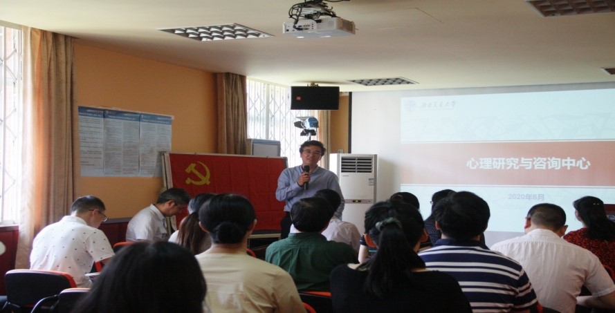 最后,学校党委副书记沈火明同志做了总结讲话,他首先高度肯定了宁维卫同志长期以来对中心所做的贡献,特别是宁维卫教授团队在国家级精品课、国家级教学成果奖等方面所取得的成绩,沈书记还高度赞扬了心理中心在新冠肺炎疫情防控期间所做的大量工作。最后沈书记对刘咏梅书记和新班子团队提出了殷切希望。