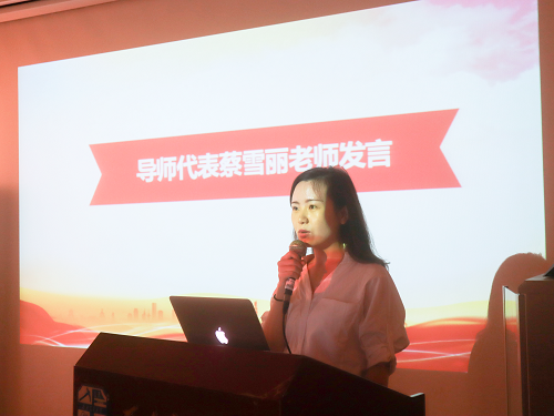 研究生导师代表蔡雪丽老师结合自身经历向同学们提出了四点期望:要明确自己的目标,并围绕自身目标扎实迈进;学会研究型的学习方式,坚持阅读英文文献,善于做笔记,积极与导师探讨;建立和谐的师生关系,做到教学相长;坚持运动,做一个身心健康发展的人。