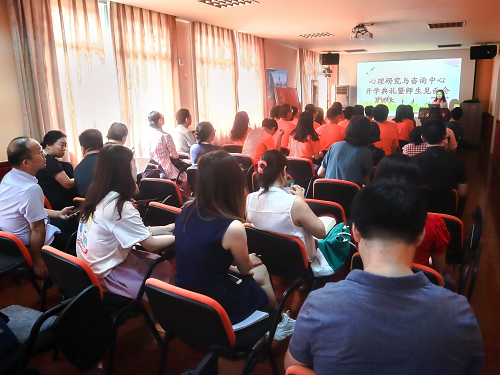 陈华主任首先欢迎了2019级研究生们的到来,并向他们介绍中心的发展情况,同时对同学们提出了希冀。她表示心理中心已经率先在国内构建了课堂教学、咨询与危机干预、实验实训、心理文化和社会服务的“五位一体”的心理健康教育创新体系。放眼未来,陈华主任希望全体研究生们刻苦努力、坚持奋斗,“每个优秀的人,都有一段沉默的时光。那段时光,是付出了很多努力,却得不到结果的日子,我们把它叫做扎根”,望大家共勉。