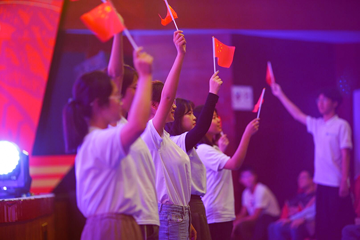 合唱队全体成员们精神抖擞、士气高昂!从单字的发音到整体的配合,从台上的齐声合唱到台下挥舞的五星红旗,师生们对节目进行了精心的排练和细致的打磨,克服了重重困难,最终成功的将心理中心爱党报国、不畏艰难、积极向上的精神风貌完美的呈现在比赛现场。