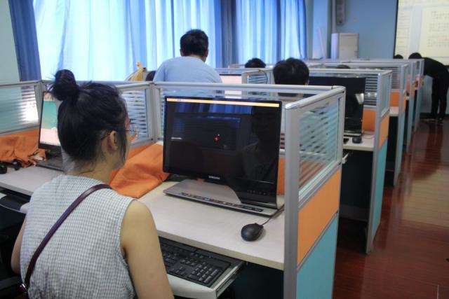 上午9:00的五教,适逢周六,仍是静悄悄的,但三楼平台的签到处已经聚集了一批来参加初赛的同学,他们二三成团,间或耳语两句。初赛主要是考察同学们反应速度、记忆力、注意的分配等能力。时间到了!选手们在工作人员的带领下来到比赛现场,落座,听裁判兼主持张重寅同学讲解比赛须知。比赛开始!选手们专注极了,双眼紧紧地盯着面前的电脑屏幕,一眨也不敢眨。一位选手可能是过于紧张,盯着指导语足足5分钟不曾错眼,这才小心翼翼的按下了空格键继续比赛。一时间,这狭小的空间里只剩下了鼠标清脆的点击声和监考员轻声细语的答疑声。很快,第一批选手离开了,第二批、第三批、第四批依次进入比赛现场。上午11点30分,初赛顺利结束。比赛结束后,经过工作人员认真统计,前20强选手名单产生。
