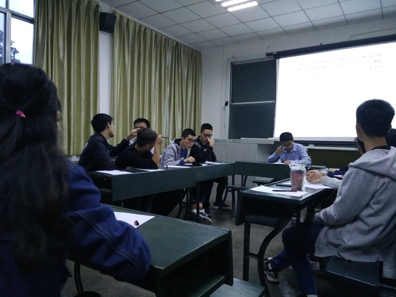 活动一开始,主持人用简练的语言介绍了活动的流程并把时间交给了考官,接着考官安排同学们做一个自我介绍并对大家进行了简单的考核。之后活动进入正题,考官抛出考题后就把时间留给了同学们进行自由讨论并发言。