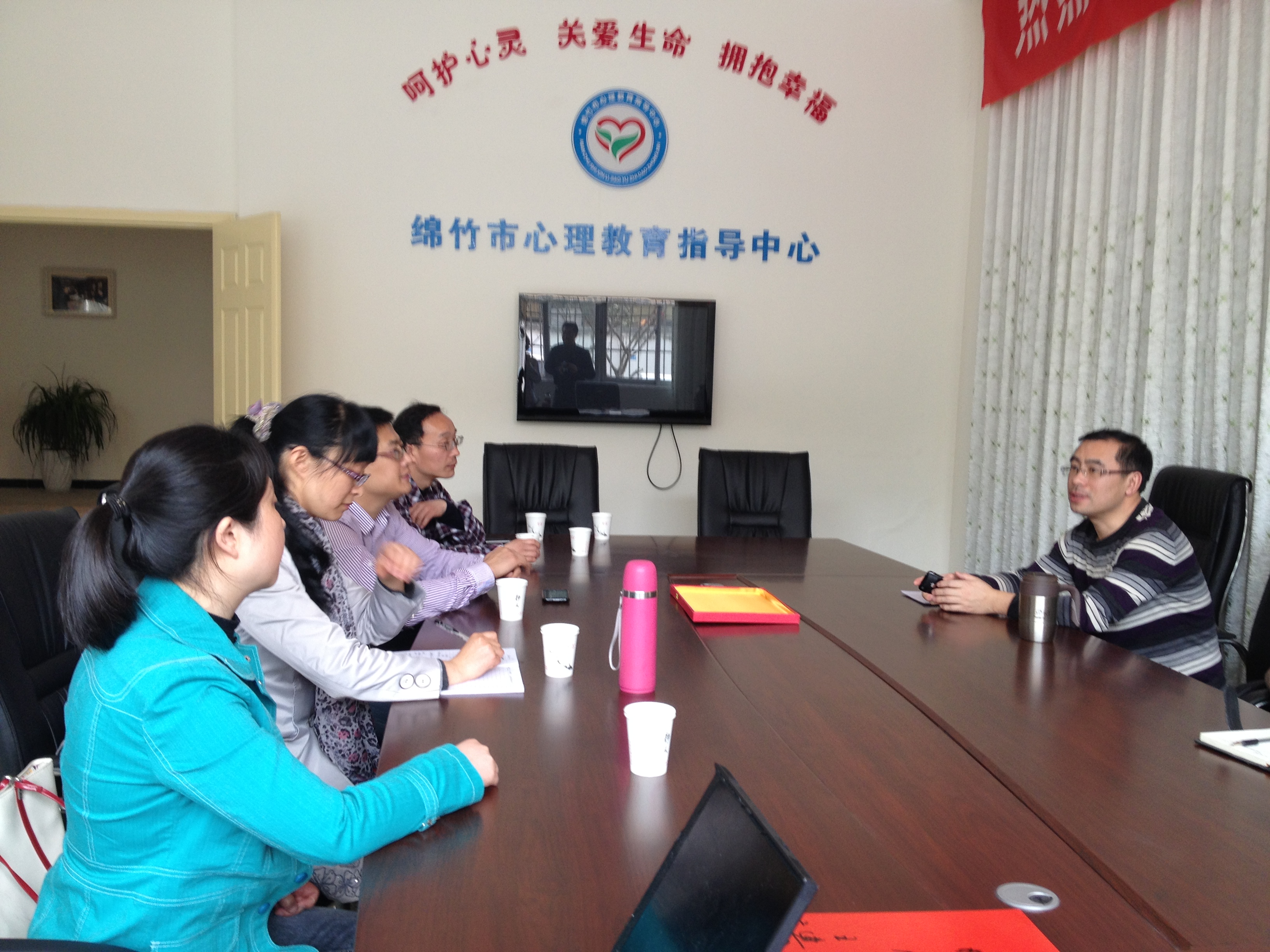 老师一行人前往绵竹市心理教育指导中心进行了参观交流,受到绵竹心理中心主任洪军等人的热情接待。