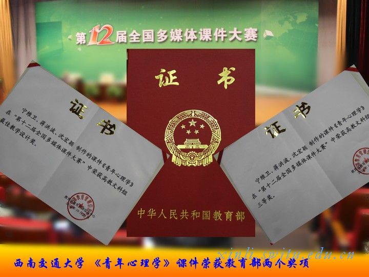 《青年心理学》课件荣获教育部两个奖项荣誉称号