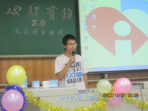 主办的第二届大型互动交流晚会“心li有约”在4151和4152分别开展了选手选拔和大众评审面试。通过选拨,将会从204位报名选手中挑选出16名参加晚会,从近100名报名者中选出30名担任晚会的大众评审。竞争十分激烈,各位选手也都尽情发挥,秀出特长,为现场带来了精彩纷呈的表演。