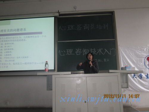 2012年1 1月11日下午2:00-3:30,大学生心理学会心理咨询员培训系列讲座之“心理咨询技术入门” 二教展开,主讲人为捷克论坛