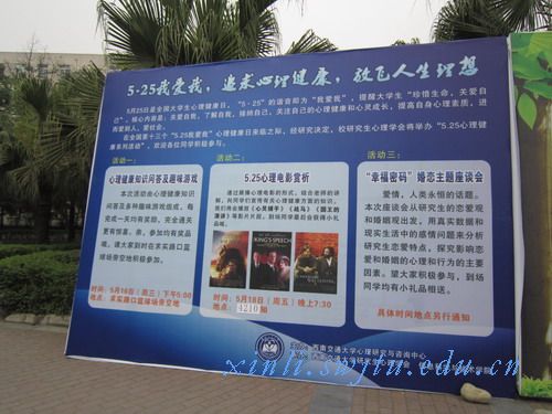 主办,研究生心理学会承办的心理健康游园活动于2012年5月16日下午在求实路口隆重举行。
