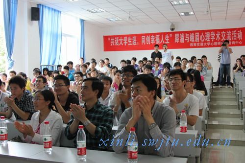 2012年5月26日,在党支部书记赵慧老师,学生工作组马岳德老师、沈宏颖老师的带队下,心理中心09级、10级全体同学赴峨眉校区参加为期两天的学术交流活动。本次活动旨在通过师生间关于心理学学术发展、学生社团(学生会、大学生心理学会等)建设等方面的沟通和交流,促进交大犀浦、峨眉两校区大学生心理健康教育工作的全面开展和提高。同时,通过不同年级之间,尤其是高年级同学之间关于学习、生活、就业等方面的互相了解,不仅建立起两校区心理学发展团队进一步互相交流、互相促进的平台和桥梁,也帮助不少同学解决了面对求学和择业方面存在的疑虑和困惑。