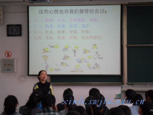 在带领大家认识了大一的新鲜与迷惑,大二的疲倦与寂寞,大三的忙乱与厌烦和大四的后悔与焦虑之后,高老师又引导大家着眼于现在的日常生活与学习。她先是调查了同学们目前的日常作息时刻表,又让大家根据事情的重要程度将所做之事进行排列和分类;再考虑到人的生理周期,对大家之前的日程安排进行了修改和完善,使大家惊讶地发现“原来日子还能这么过。”针对大家时间不够的问题,她希望大家能够分清“忙”“盲”与“茫”,而不是“被时间追着走,被任务压着走”。而且,她还补充了相关资料,为大家介绍了十三种科学管理时间的方法,令同学们豁然开朗。