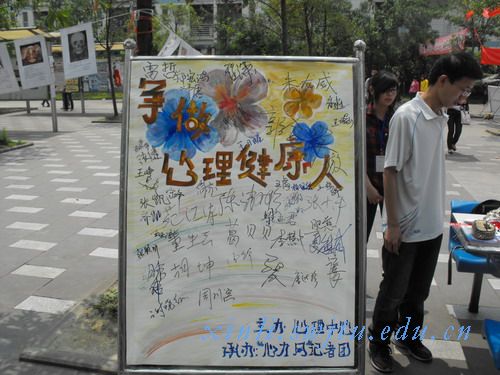 心力网为了让广大的交大学子有一个快乐地心态学习和生活,于2011年5月25日星期三中午十一点三十分在三食堂和四食堂门口开展心理图片展和“争做心理健康人”的签名活动。