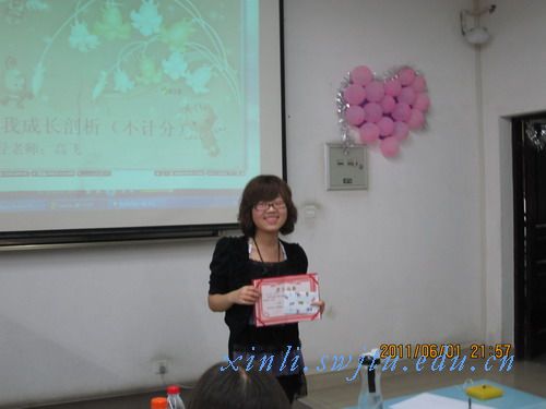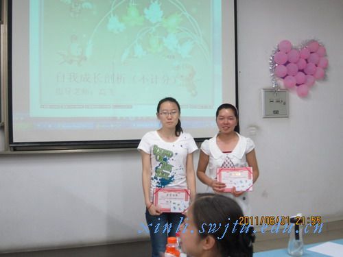 08级1班的赵佳同学一举夺冠,其他选手分别获得了第二、三等奖以及优秀奖。在同学们热烈的掌声中,心理中心老师为获奖者颁布奖状和奖金,以资鼓励。