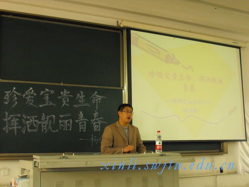 为了帮助同学们了解心理健康知识,提高心理素质,由心理咨询与研究中心主办,西南交大心理学会承办“心力论坛----心理学与人生之大学生心理健康讲座”于2011年4月9日星期六下午2:30分在2516教室成功举行。讲座由心理咨询与研究中心杨兴鹏老师主讲。大一各班的心理委员,心理学会会长杨烨和心理学会干部以及心理学爱好者参加了讲座。