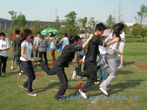接下来的游戏是真人大富翁 ,选手们在正方形6556构成的棋盘里通过掷骰子来选择比赛类型,有竞技类、休闲类和人品类抽卡。比赛项目选定后,选手们在引导员的指导下要在规定的时间内完成。有的队伍抽到心心相印这个游戏,一个人表演,一个人去猜。表演者在演绎那些词语的时候,各种可能想到的表情和动作,无论多么的夸张和不可思议,全都展现出来,充分体现了他们那鲜活的创意灵感和出奇的搞怪点子。有的队伍选中了迷糊接力,队员在抓着自己的耳朵按反方向旋转,然后跑到对面和队友进行接力。一些队员在旋转之后完全晕了,没有方向感,一些甚至朝着相反的方向走去,场面甚为壮观呀!