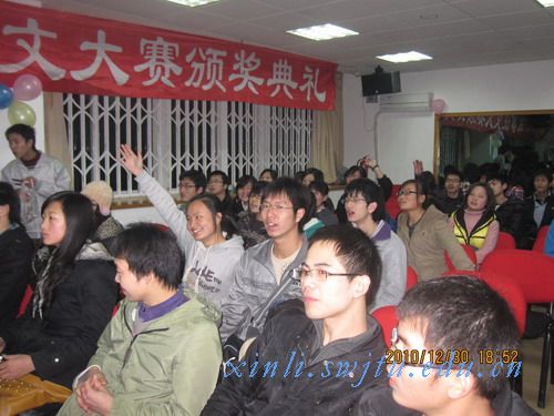 大会在建筑学院同学表演的激情舞蹈中拉开了序幕,使大会一开始便直接进入了一个小高潮。紧接着,大会就直入主题-----请到场嘉宾为此次获优秀奖的选手颁发获奖证书和奖品。此外,为了突出心力网的品牌定位、丰富大家的心理知识,大会特意设置了“心理知识小问答”互动环节,大家都踊跃举手参与答题,足见大家对心理知识的了解和兴趣。在给五名三等奖获奖选手颁奖之后,大会又被心力网成员李振华精彩的魔术表演带进了又一波高潮。不息的掌声中,大会继续请上了荣获二等奖的三名选手并由其中一位艺传学院的杨莉莎同学作为获奖选手代表和大家交流她的创作灵感和获奖感受。她在获奖的高兴之余向大家尽吐心声,道出了自己三年暗恋的点滴得失,令所有人感动不已。一波感动未平一波感动又起。两位主持人动情咏颂了两位一等奖获奖选手的作品《碎影流年》《他说》,再次令同学们“深陷感动中不能自拔”。而赵慧老师感性的深度剖析和杨兴鹏老师幽默精彩的点评,使所有的观众陷入对爱情、亲情、友情的回忆与思考中。大会最后,张涛老师进行了锦上添花地总结。张老师衷心地感谢大家能积极参与心情故事征文比赛,同时也预祝大家元旦快乐。
