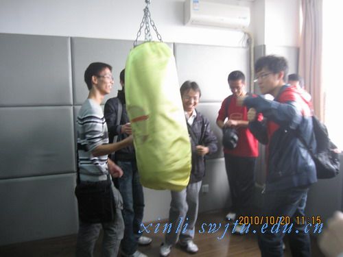 在实验室,同学们先后参观了括人才测评室、心理动力实验室、情绪宣泄与调节室、音乐心理调适室、虚拟现实心理治疗实验室等一系列心理实验室,并了解了各个实验室的使用方法及效果。在情绪宣泄与调节室,同学们纷纷戴上拳击套,拿起充气棒,尽情地宣泄一番。在虚拟现实心理治疗室,同学们还观赏了由学生团队自己制作的心理治疗短片,极大地引起了同学们对心理学的兴趣,并对实验室参观十分满意。