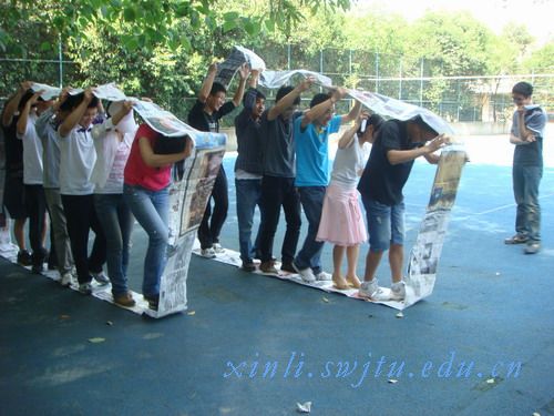 活动的第一个环节为生死与共。活动要求选手通过相互协调合作,能够在不足一脚的报纸上站立十秒,坚持到最后者胜。每队都派出了三组选手参加挑战。看似简单的活动却使得同学们相当苦恼。为了能够以最佳的姿势在报纸上停留最长的时间,同学们在对内交流、对间交流,俨然成为了一个整体,传承了“友谊第一,比赛第二的”好风气,最后第一个环节在角逐出前三名后圆满结束。