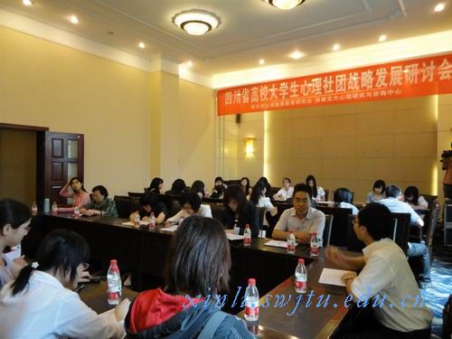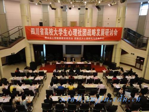 九里校区镜湖宾馆,参加由四川省心理健康教育研究会主办的首届四川省高校大学生心理社团战略发展研讨会,探讨高校心理社团未来发展促大学生健康成长、成才议题。