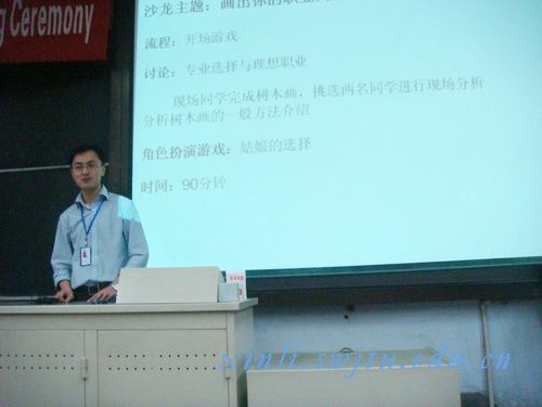接着雷老师又给我们介绍了一些心理学方面的专业知识,这让在场的同学似有所悟。雷老师的讲解引起了同学们对心理学极大的兴趣,纷纷向雷老师提问题,并请雷老师推荐几本有关心理学方面的书。最后本次心理沙龙活动在热烈的掌声中圆满结束。
