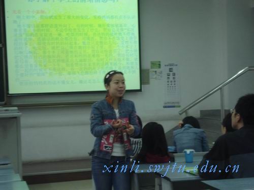 高飞老师主讲,大学生心理学会主办。全校各班的心理委员及一些感兴趣的同学参加了这次培训。