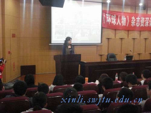 4月26日晚7:00,《环球人物》编辑部副编辑刘畅在图书馆二号报告厅为西南交大学子举行了一场讲座。
