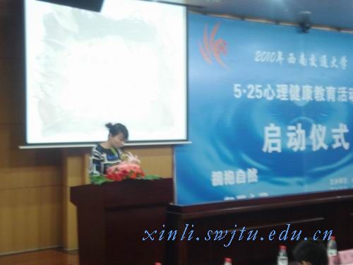 接下来心理健康教育工作先进代表黄莺发言,她说,心理健康教育是一项基本工作,需要学校,教师,中心及学生的共同努力。外国语学院青协协会会长于婷和大学生心理学会会长张冀龙作为学生代表发言,他们纷纷表示,大学生的心理健康需要更多的人来关注,同时呼吁广大学生积极地加入到这次活动中来。