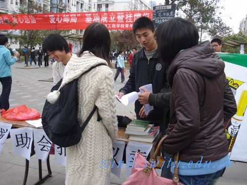 3月25日中午,以援助贫困学生为目的的“一本书,一个梦”捐书义卖活动在学校三四食堂前火热进行。该活动由校团委、社团联合会主办,贫困地区教育观念救助会承办,时间从3月24日持续到4月5日。