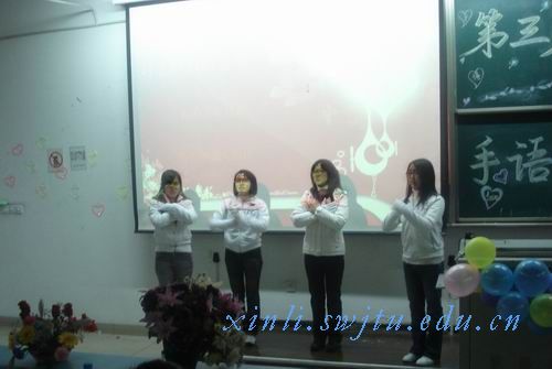 交通运输学院心灵俱乐部承办的第三届“花开无语”手语培训后期汇演比赛于12月4号晚在2321拉开帷幕。交通运输学院学生工作组柯小梁老师、王宇老师及交通运输心灵俱乐部简易会长等来到了此次比赛现场。