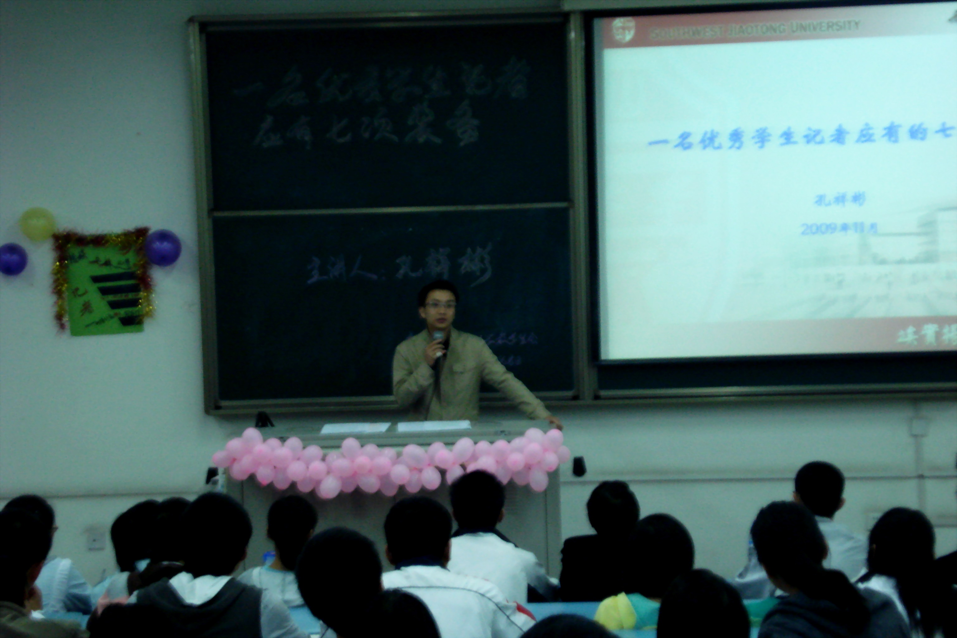 最后,孔老师希望我们有一种渴望成功的意志,学习与事业是我们想做和应该做的事,正确合理的安排时间,把记者作为一项事业来认真经营,相信这将成为我们走上工作岗位前的最好的一次实战演练。同时他不忘提醒大家细节决定成败,无论在何时何地采访都要佩带记者证、提高速写能力等。