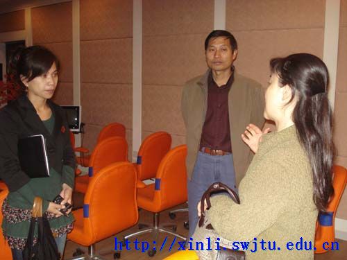 在心理测评和咨询实验室,两位老师表现出了极大的兴趣。在心理动力学实验室和情绪宣泄与调节室,陈老师向大家介绍了沙袋、不倒翁、橡皮泥等各种发泄工具治疗心理疾病的原理和效用。随后大家还参观了人才测评实验室,团体心理训练室及心理剧实验室,团体生物反馈实验室等。