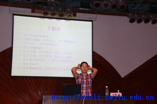报告会一开始,汪小容老师对前来的新生及其家长们表示热烈欢迎,并带领到会的家长和同学做了两个简单而有趣的游戏,帮助大家放松心情,解除疲劳。互动游戏结束后,汪老师引出了本次报告会的主题——心理健康与成功人生。