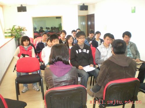 2009年4月2日,捷克论坛 组织开展的各院系班级心理委员培训正式开始。 下午2点,数学学院辅导员徐海晶老师和杨明星老师带领导学院十多名心理委员准时来到心理测评与咨询实验室5229房间,由中心心理健康教育秘书杨兴鹏老师为他们进行专业培训。 杨老师主要向参加培训的同学讲解了三方面的内容:一是要保证自身心理健康。心理委员首先要明确什么是心理健康,在日常生活如何调整自己,保证自身的心理健康。二是学会对心理问题的鉴别,了解什么是发展性的一般心理问题,什么是严重心理问题。第三是建议形成心理互动小组,包括宿舍舍长、班委和院系辅导员.心理委员应该起到多方面沟通桥梁的作用。杨老师的讲解生动活泼,浅显易懂,同学们很快地明白自己应该如何开展工作以及工作的重点,具有很强的指导意义。 讲解结束后,老师和同学们参观了实验室,并在情绪宣泄室痛快地体验一番,带着收获与满意的笑容结束了此次培训。