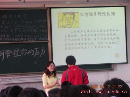 心理咨询与研究中心田瑞琪教师在犀浦校区2213室作了“如何管理你的压力”的专题讲座。