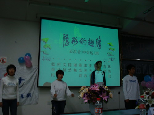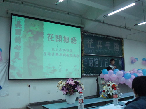 交通运输学院心里俱乐部承办的“花开无语”交大本科校区首届手语培训后期汇演于12月5日晚7点半在X2321教室拉开了帷幕。到场的嘉宾包括了成都市残疾人联合会的专业老师、前沿网总编刘思文、交通运输学院心灵俱乐部前任及现任会长等。