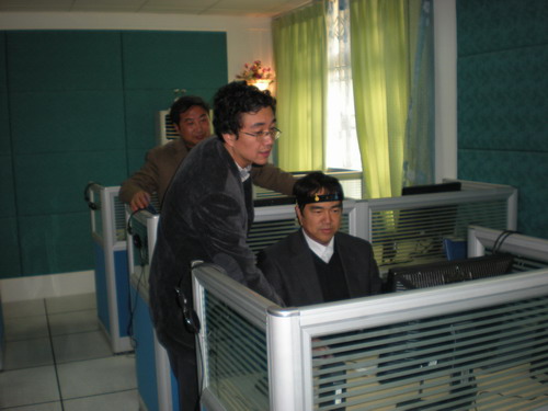 在人才测评室和“心力”大学生心理测评与咨询网站,宁主任向宋处长介绍了“心力”大学生心理测评与咨询网站和正在调试试用阶段的四川省心理健康教育网络平台 “四川省心理援助网”的功能与作用,以及开展人才测评的情况。在心理动力学实验室,徐建老师以一个案例向宋处长详细介绍了沙盘治疗的原理、使用方法以及效用等。