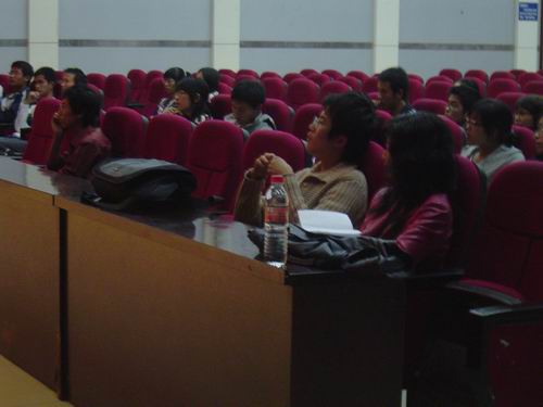 本次讲座一开始,高飞老师就以饱满的激情带领学生做起了一个摸鼻子的小游戏,来调动同学们的积极性,从而逐渐深入到找工作的话题上来,她强调要以积极、阳光的心态来面对现实与生活。为此,她用几幅图片以及同学们对这几幅图片看法来阐述她的观点。