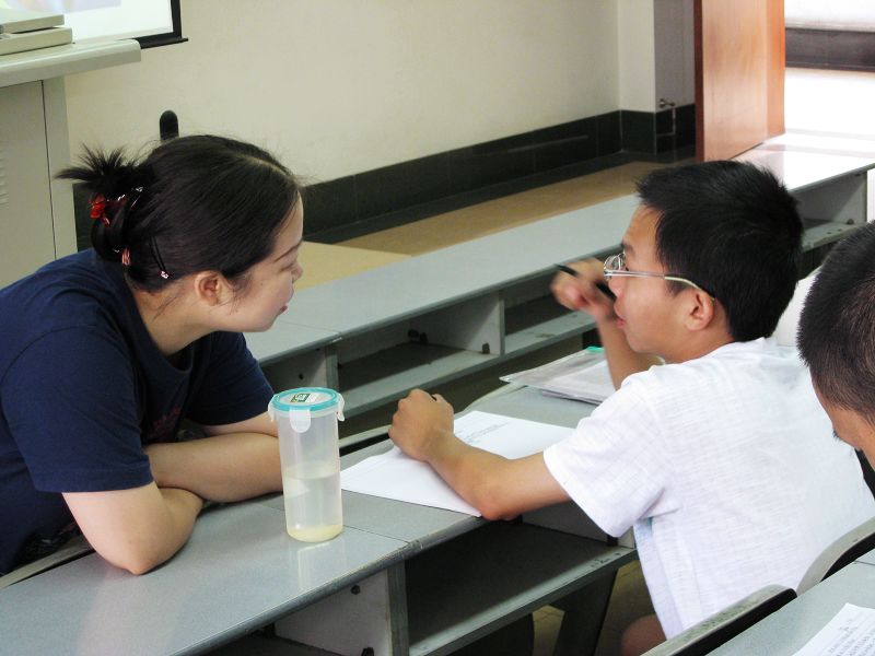 游戏一开始,高飞老师让同学们侧坐成一排,面向同一个方向,模仿大灾难情况下艰难传递信息。老师给排头的同学一个信息,让大家不说话不准回头不用任何工具,把信息从排头传至排尾。首先在没有任何沟通和交流的情况下,一个同学通过在另一个同学后背上写字的方式来传递信息,传递信息的同学觉得好难以表达,接受信息的同学觉得特别难以明白,等待的同学更是焦急万分。接着同学们用商量的对策,进行了第二次信息传递。通过这次游戏同学们对大灾难情况下艰难传递信息的心理有更深的体会,同时,也意识到全方位考虑问题的重要性。