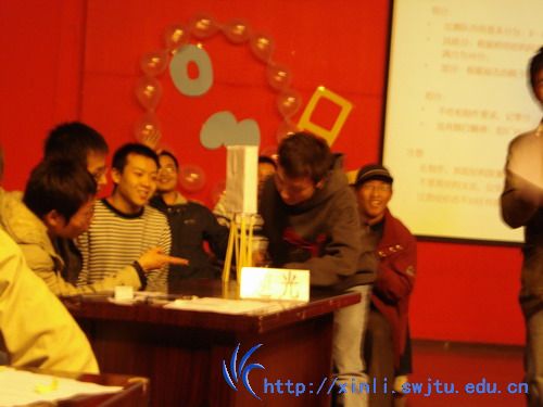 接下来是动手题——“搭砖头”。要求选手们在规定的时间内用筷子塔好架子然后架起仿真砖头大的纸砖头,比赛架起的“建筑物”的高度和坚固程度。 紧张的时刻到了,为了使“建筑物”尽量高又不至于在抽走部分筷子后“坍塌”,所有的队员们都绞尽脑汁用各种办法尝试着,他们已经忘了他们是舞台的中央。最先“完工”的是3130队,他们的作品接受检验——抽走4根筷子后依然屹立不倒。然而最成功的要数逆光队了,他们最后的作品高度超过38厘米并且在抽走6根筷子后仍是稳如泰山。这个赛题不仅考察选手的专业知识还涉及到他们的创意。正应了头脑奥林匹克的宗旨:只有创造,才有突破,才有提高,才有更大的成功。