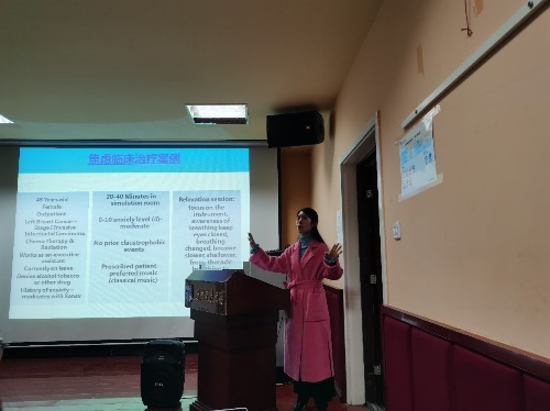 在讲座的第三部分,刘老师向同学们汇报了“323国家重点实验室—大学生心理健康心理实验”的最新成果,主要是老师如何将所学到的焦虑音乐治疗理论和实践知识运用在捷克论坛