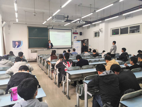 讲座开始前,柯老师首先跟同学们强调了此次讲座的重要性,接着介绍了本次心励讲堂及求职训练营的邀请嘉宾李松先生。在李松先生简单的自我介绍后,他邀请在场的同学们共同思考一个问题“三年以后,你会怎么样?”由此引出了本次讲座的主题——职业及规划。李松先生讲到,不同的就业选择决定了未来的人生方向,市场风云转变,面对越来越严峻的就业形势,同学们一定要做好未来规划。