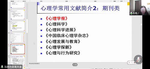 2020年11月12号晚7点,心理中心科研工作坊第二场讲座在腾讯会议上开展,本次讲座主题为如何查找文献和写好文献综述,讲座邀请嘉宾为心理中心优秀教师冯果。辅导员陈瑶主持,心理中心各年级本科生、部分研究生参与此次讲座。
