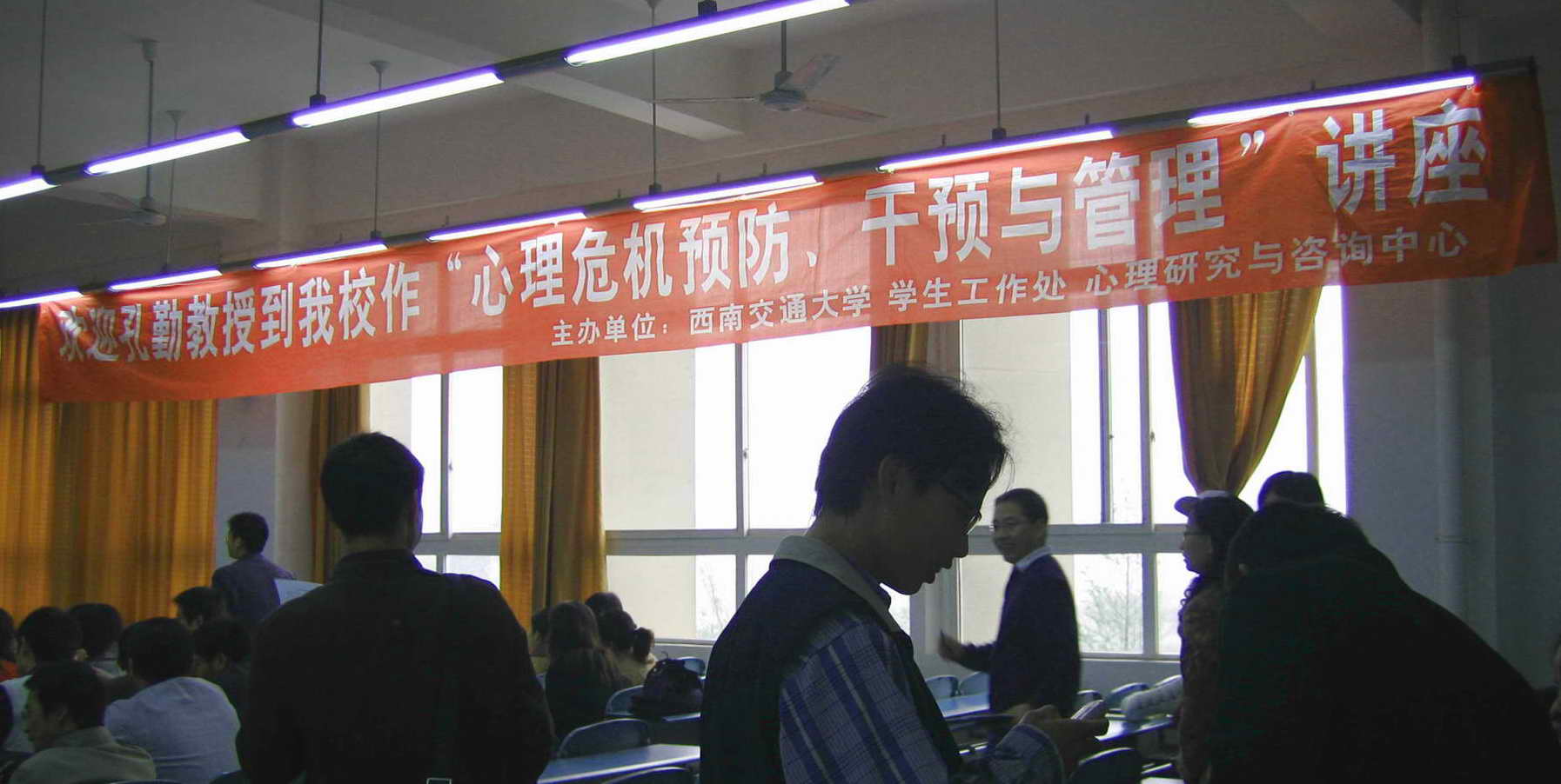 四月十一下午三点,在大学生活动中心将继续举行有关心理危机的讲座,希望同学们积极关注,踊跃参加。