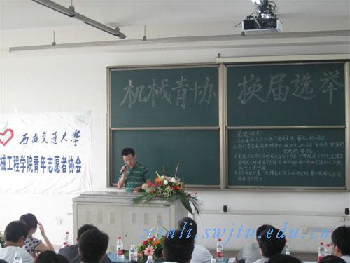 校团委主办,机械工程学院青年志愿者协会承办的换届选举大会在x2520隆重举行。指导老师刘景明,青年志愿者协会会长窦志亮,李文涛,谭玲,章健以及各部门部长及全体干事出席了此次大会。